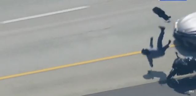 Ο αναβάτης του δίκυκλου, που έτρεχε με 270 χλμ/ ώρα, από τη σύγκρουση εκτοξεύτηκε στον αέρα, πριν καταλήξει στο έδαφος και συρθεί για πολλά μέτρα στην άσφαλτο.