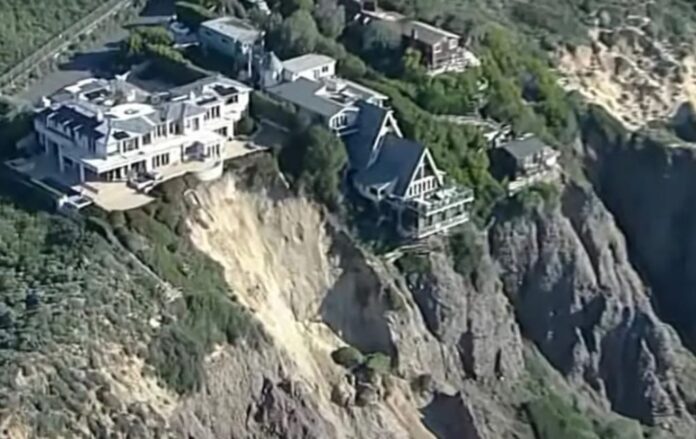 Τρεις υπερπολυτελείς κατοικίες στην Καλιφόρνια φαίνονται να «κρέμονται από μια κλωστή» αλλά μέχρι στιγμής οι Αρχές δεν έχουν διατάξει εκκένωση των κατοικιών.