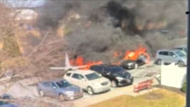 Βίντεο που κοινοποιήθηκαν στα μέσα κοινωνικής δικτύωσης έδειχναν μαύρο καπνό να υψώνεται από τα συντρίμμια του αεροσκάφους και πολλά οχήματα να τυλίγονται στις φλόγες.