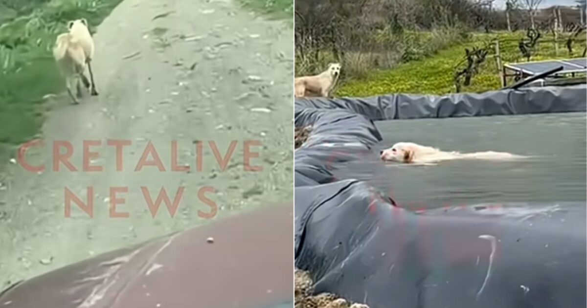 Κουτάβι που έπεσε σε λιμνοδεξαμενή στο Ηράκλειο την γλίτωσε, όταν η σκυλίτσα μαμά του διένυσε πάνω από ένα χιλιόμετρο για να βρει κάποιον προκειμένου να τον διασώσει.