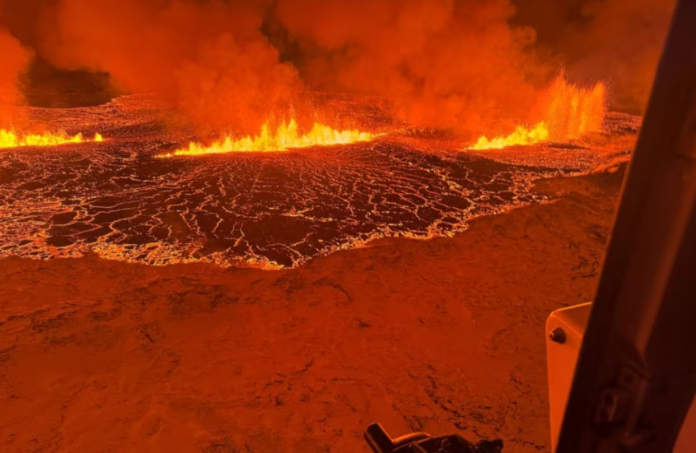Το ρήγμα που έχει σχηματιστεί στο σημείο της έκρηξης ξεπερνά τα 4 χιλιόμετρα σε μήκος και η λάβα που βγαίνει από μέσα δημιουργεί εικόνες αποκάλυψης.