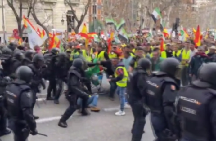 Η οργή των αγροτών, στην Ισπανία, ξεχειλίζει… Έρχονται αντιμέτωποι με αστυνομικούς, οι οποίοι τους εμποδίζουν να φτάσουν -με τα τρακτέρ τους- στο κέντρο της Μαδρίτης… Οι δυνάμεις ασφαλείας τους απωθούν με τη βία.
