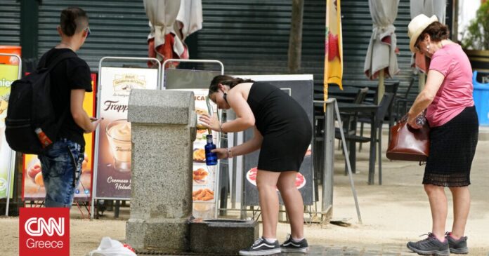 Οι πολίτες στην Ισπανία προσπαθούσαν το Σάββατο να δροσιστούν με ανεμιστήρες, μπουκαλάκια νερού και βουτιές στα συντριβάνια καθώς η χώρα βιώνει ασυνήθιστα υψηλές θερμοκρασίες γι’ αυτή την εποχή που σε ορισμένες περιοχές έφθασαν και τους 40 βαθμούς Κελσίου.