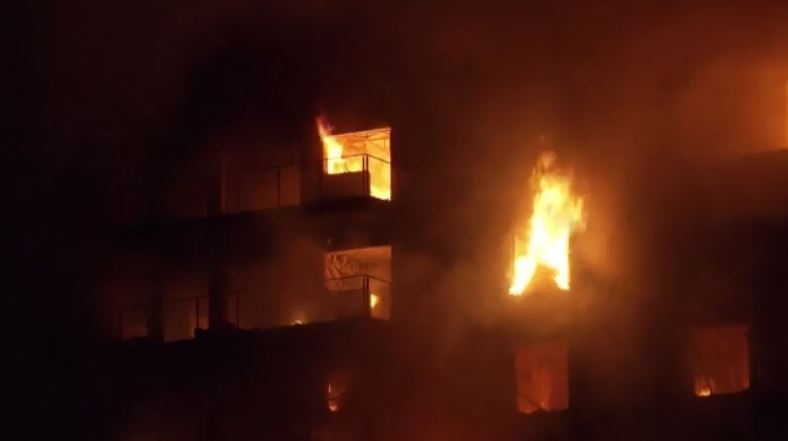 Η πολυκατοικία των 14 ορόφων στη Βαλένθια έχει τυλιχτεί στις φλόγες. Πυροσβέστες δίνουν μάχη με τις πύρινες γλώσσες.