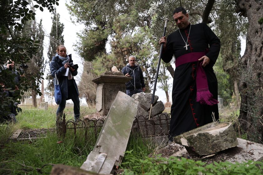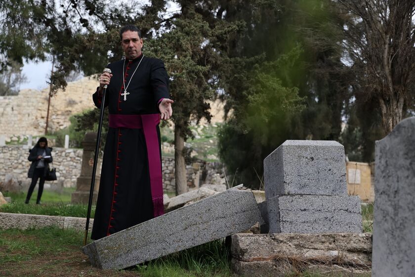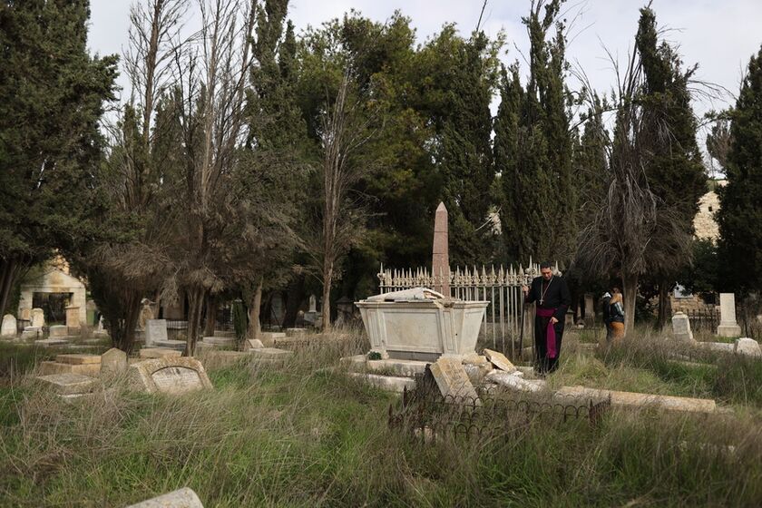 «Ανακαλύψαμε περισσότερες από 30 σπασμένες ταφόπλακες και σταυρούς», ανέφερε ο Χόσαμ Ναούμ, αγγλικανικός επίσκοπος στην Ιερουσαλήμ.