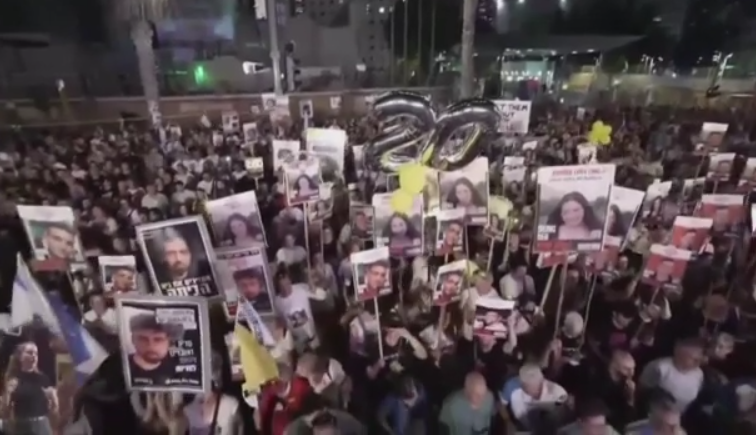 Σε άλλο σημείο της πόλης συγγενείς των ομήρων ζητούν την άμεση κατάπαυση του πυρός ώστε να επιστρέψουν οι δικοί τους άνθρωποι.