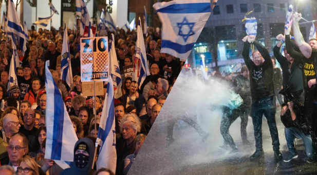 Με νερό υπό πίεση, οι δυνάμεις ασφαλείας απώθησαν τους διαδηλωτές, οι οποίοι απαιτούσαν από τον Ισραηλινό πρωθυπουργό να κάνει άμεσα ό,τι χρειάζεται για την απελευθέρωση των 130 ομήρων.