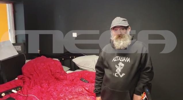 Φορώντας μαύρο φούτερ και το χαρακτηριστικό του καπέλο, ο Κωνσταντίνος Πολυχρονόπουλος λέει πως όποιος τον αναζητά θα τον βρει στο σπίτι του «Άλλου Ανθρώπου»: «Είμαι στον ”Άλλον Άνθρωπο” και είμαι εδώ και όποιος θέλει να έρθει να με βρει εδώ».