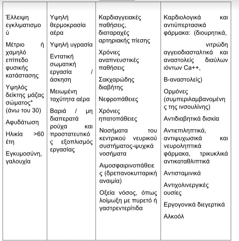 Τα μέτρα που μπορεί να ληφθούν για να αντιμετωπιστεί τυχόν θερμική καταπόνηση των εργαζομένων περιλαμβάνουν: