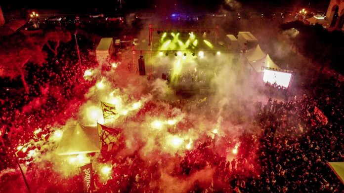 Η νύχτα έγινε μέρα στο κέντρο της Θεσσαλονίκης από χιλιάδες φίλους των “κίτρινων”, που συγκεντρώθηκαν στις εορταστικές εκδηλώσεις της ομάδας, με αφορμή 110α γενέθλια από την ίδρυση του συλλόγου.