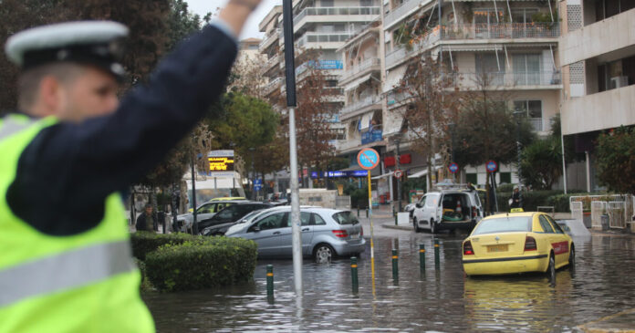 Το νερό έχει φτάσει, σε πολλά σημεία, μέχρι τη μέση των οχημάτων με αποτέλεσμα να έχει προκληθεί και μποτιλιάρισμα.