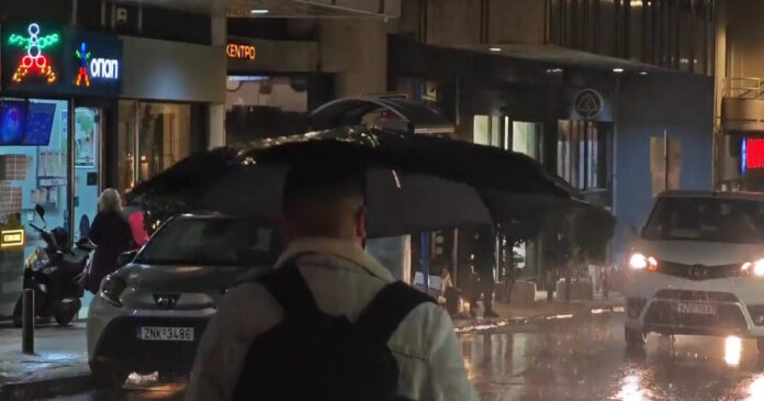 Όσοι κυκλοφορούν στην Αθήνα ανοίγουν τις ομπρέλες τους και χρησιμοποιούν ότι έχουν για να προστατευτούν από την έντονη βροχόπτωση.