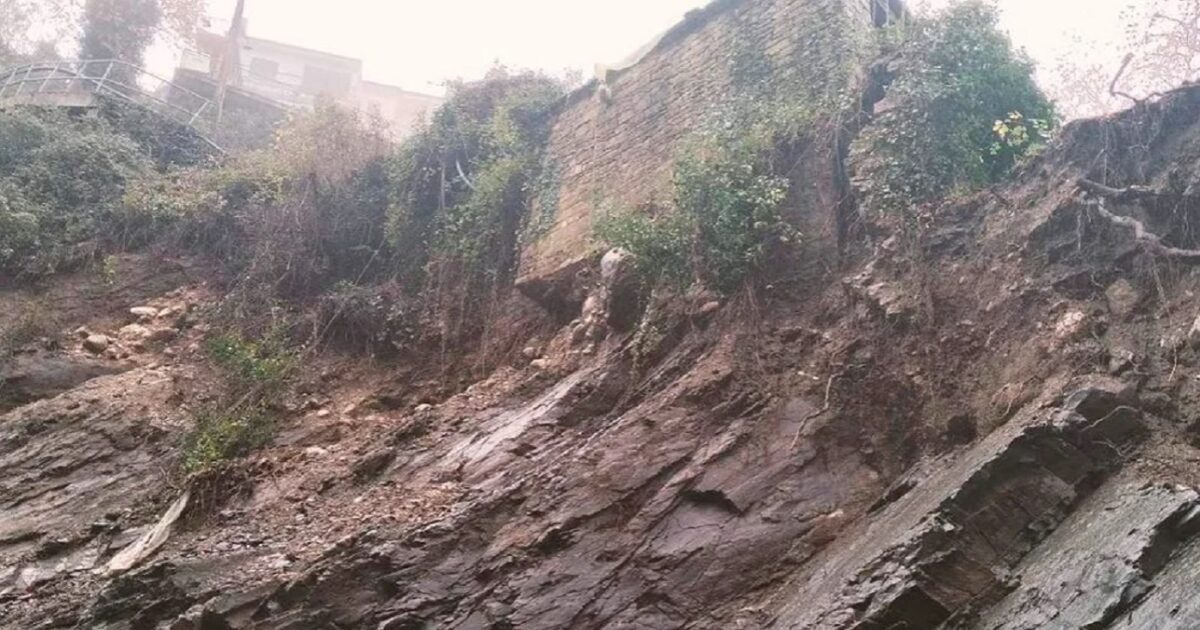 Ξαφνικά μεγάλος όγκος γης υποχώρησε με αποτέλεσμα να παρασύρει τμήματα της πλαγιάς και πολλά σπίτια κρέμονται από μια κλωστή.