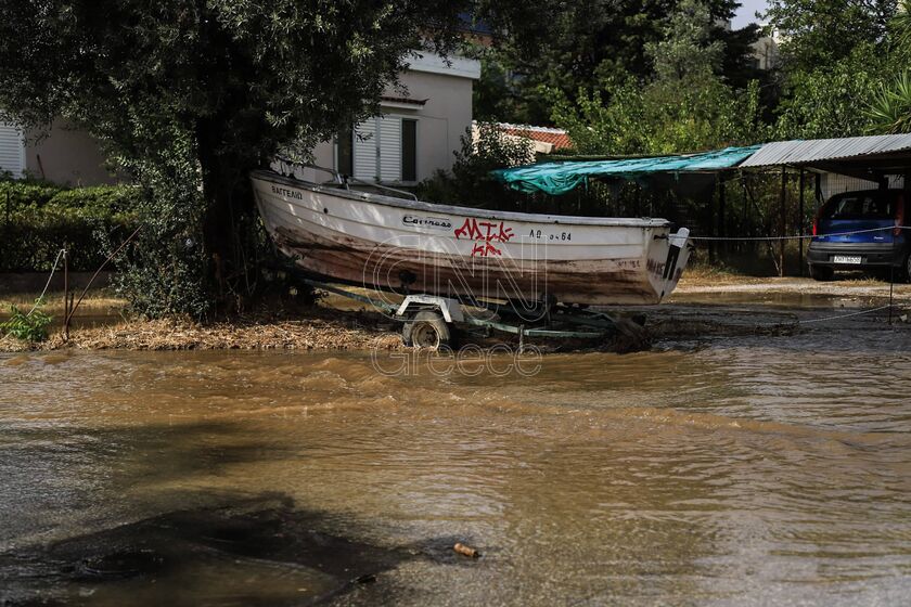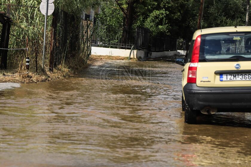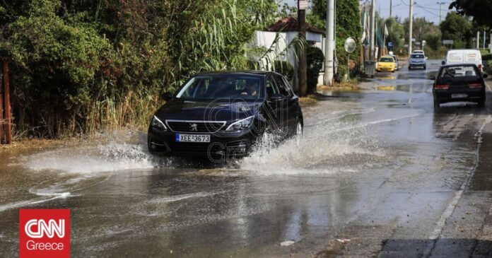 Σύμφωνα με τις πληροφορίες, λίγο μετά τη γέφυρα Καλυφτάκη ένα αυτοκίνητο ακινητοποιήθηκε από τα νερά της βροχής και υπέστη μηχανική βλάβη.