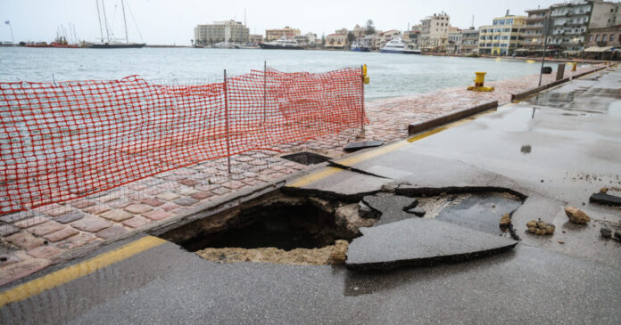 Στη Λήμνο υποχώρησε το οδόστρωμα στην παραλιακή οδό Αγίου Ιωάννη Κάσπακα.