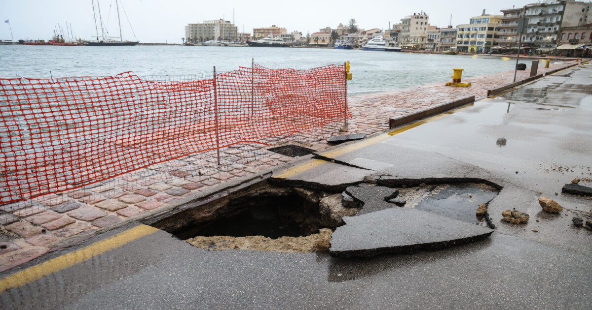 Παράλληλα η Λιμενική Αστυνομία έκλεισε από τις 14:30 τον δρόμο της Προκυμαίας στο λιμάνι της Χίου, σε σημείο που υποχώρησε το οδόστρωμα από την ορμή των κυμάτων.