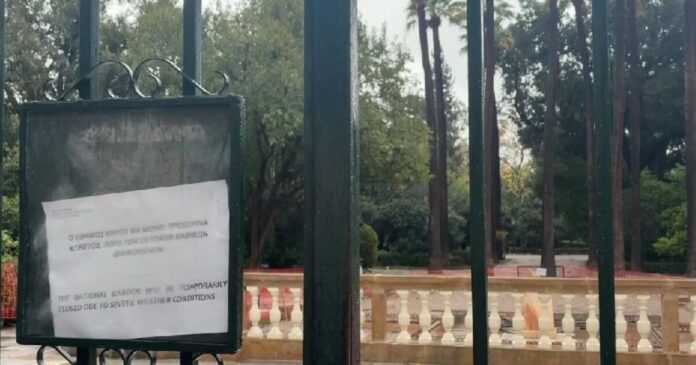 Λόγω της συνεχιζόμενης κακοκαιρίας με απόφαση του δήμου Αθηναίων Εθνικός Κήπος παραμένει κλειστός.