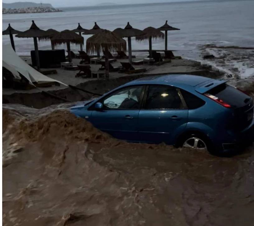 Στην παραλία της Λάρισας οι δρόμοι πλημμύρισαν και η κυκλοφορία διεξαγόνταν με μεγάλα προβλήματα.