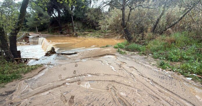 Στο Πικέρμι στην οδό Ήμερου Πεύκου έσπασε το ρέμα από τα ορμητικά νερά, υπερχείλησε ο δρόμος που παραμένει κλειστός.