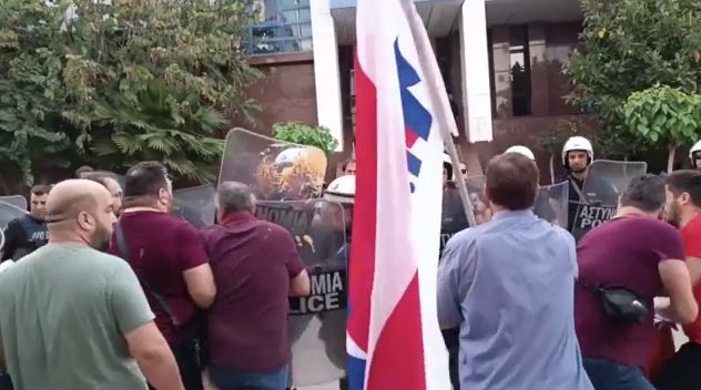 Ένταση έξω από το δικαστικό μέγαρο Καλαμάτας, λίγο πριν από την εκδίκαση της υπόθεσης του πολύνεκρου ναυαγίου 47 ναυτικά μίλια νοτιοδυτικά της Πύλου, σε διεθνή ύδατα, πέρυσι τον Ιούνιο. Διαδηλωτές συνεπλάκησαν με τις αστυνομικές δυνάμεις.