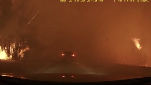 Τα αυτοκίνητα περνούν μέσα από την πύρινη κόλαση στην Νέα Σκωτία του Καναδά. Οι οδηγοί δεν βλέπουν τίποτα. Διασχίζουν τις φλόγες προσπαθώντας να ξεφύγουν.