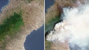 Μέχρι στιγμής έχουν καεί 40.000 στρέμματα δάσους, με τις δορυφορικές εικόνες να δείχνουν την τεράστια καταστροφή.