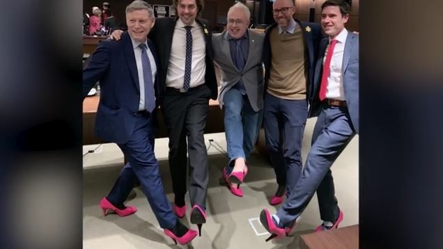 Φόρεσαν ροζ ψηλοτάκουνες γόβες συμμετέχοντας στην εκστρατεία «Hope In High Heels» (Ελπίδα Στα Ψηλά Τακούνια) που οργανώθηκε από ένα καταφύγιο γυναικών στο Οντάριο, εκεί όπου εκλέγεται και ο συγκεκριμένος υπουργός.