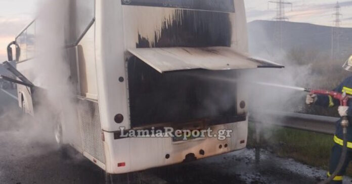 σύμφωνα με το lamiareport, η φωτιά εκδηλώθηκε όταν πυκνός καπνός άρχισε να βγαίνει ξαφνικά από τη μηχανή λεωφορείου του ΚΤΕΛ Καρδίτσας που εκτελούσε χτες προγραμματισμένο δρομολόγιο για Πάτρα, στον Ε65.