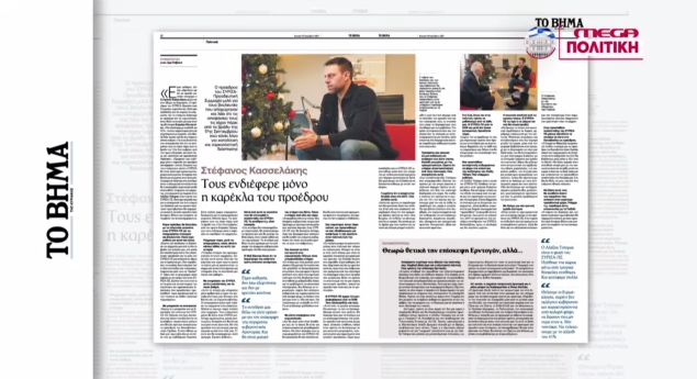 Σε συνέντευξή του στο «Βήμα της Κυριακής», ο Στέφανος Κασσελάκης στέλνει μήνυμα ανασυγκρότησης θέτοντας ως ορόσημο το συνέδριο του Φλεβάρη.