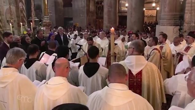 Καθολικοί κληρικοί, μοναχοί και πιστοί προσευχήθηκαν για ειρήνη στο χώρο όπου ο Χριστός πέρασε τις τελευταίες ώρες της ζωής του.