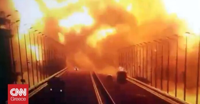Η έκρηξη προκάλεσε τεράστια πυρκαγιά στη γέφυρα της Κριμαίας, μια υποδομή καίριας σημασίας και σύμβολο της προσάρτησης της χερσονήσου της Ουκρανίας από τη Ρωσία, όπως ανακοίνωσε σήμερα η ρωσική αντιτρομοκρατική επιτροπή, χωρίς να κατηγορεί άμεσα το Κίεβο.
