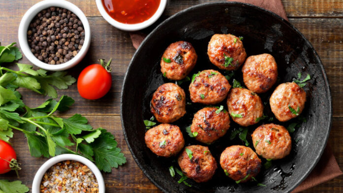 Ανακατεύουμε τα υλικά. Φτιάχνουμε τα κεφτεδάκια. Ζεσταίνουμε ένα τηγάνι σε μέτρια δυνατή φωτιά. Προσθέτουμε το ελαιόλαδο σε ποσότητα που να σκεπάζει πάνω από τα 2/3 του κεφτέ. Μόλις κάψει βάζουμε τα κεφτεδάκια και μαγειρεύουμε μέχρι να ροδίσουν από όλες τις πλευρές. Βγάζουμε από το τηγάνι και αφήνουμε στην άκρη. (Εναλλακτικά, μπορείς να ψήσεις τα κεφτεδάκια στον φούρνου στους 200 βαθμούς για 25-30 λεπτά.)