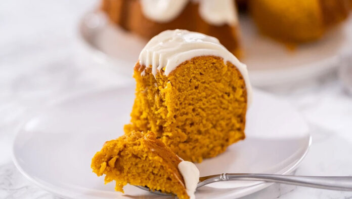 Απλώστε το γλάσο στο κέικ που έχει κρυώσει καλά, πασπαλίστε με πεκάν και σερβίρετε.