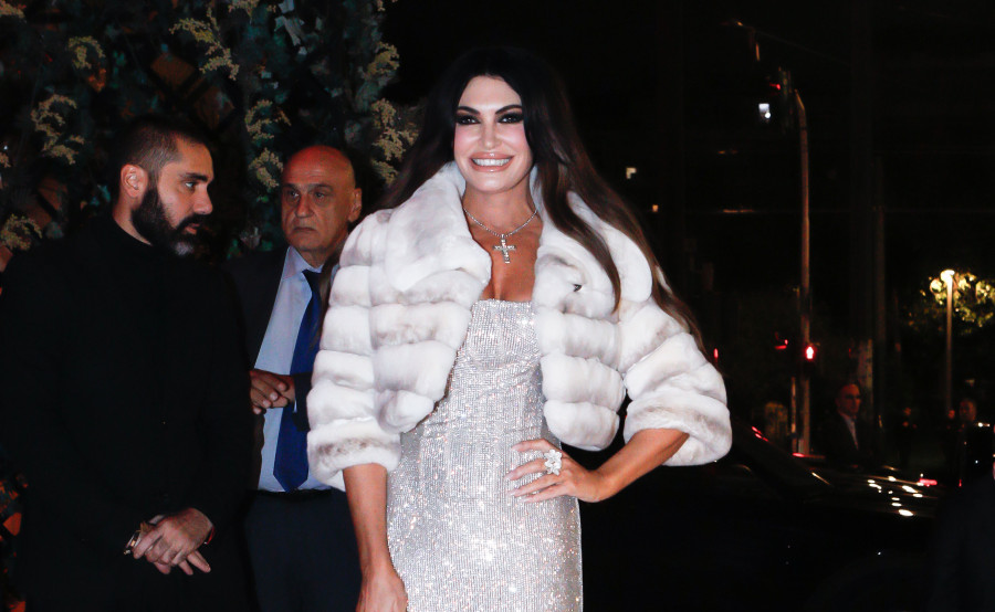 Η κυρία Γκίλφοϊλ εμφανίστηκε απαστράπτουσα στο Κέντρο Αθηνών με ασημί τουαλέτα και γούνα συνοδευόμενη πάντα από τον γιο της, Ρόναν, τη συνοδό του και τον στυλίστα της με τον οποίο είναι αχώριστοι.