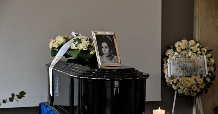 Σε κλίμα συγκίνησης συγγενείς, φίλοι και συνάδελφοι της Μέλπως Ζαρόκωστα λένε το τελευταίο αντίο στην ηθοποιό στην κηδεία της στο Α΄Νεκροταφείο, το μεσημέρι της Τρίτης (20.1.26).