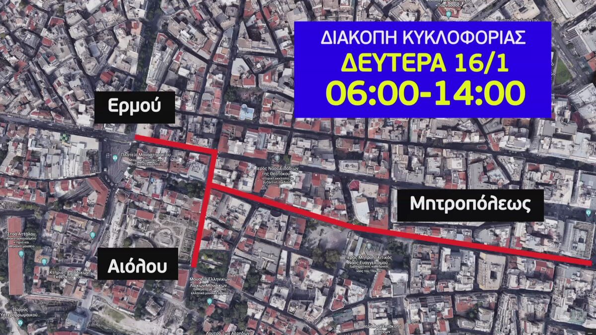 Την Δευτέρα 16 Ιανουαρίου 2023 και κατά τις ώρες 06:00′ έως 14:00′ θα πραγματοποιηθεί προσωρινή διακοπή της κυκλοφορίας των οχημάτων στις παρακάτω οδούς του Δήμου Αθηναίων: