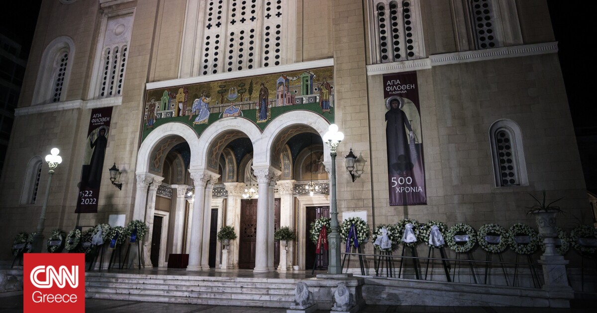 Λίγο πριν τις 12:00 η σορός θα μεταφερθεί στον κεντρικό ναό στην Μητρόπολη Αθηνών για την τέλεση της νεκρώσιμης ακολουθίας προεξάρχοντος του Αρχιεπισκόπου Αθηνών Ιερωνύμου και όλων των μελών της Ιεράς Συνόδου δηλαδή και των 12 συνοδικών Μητροπολιτών.