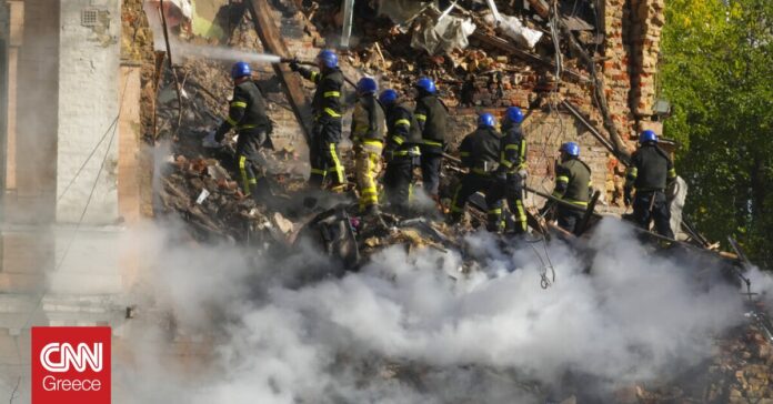 Δεν έχουν τέλος οι σοκαριστικές εικόνες από την επίθεση σε κτήρια στο Κίεβο με δεκάδες drone καμικάζι.