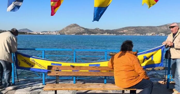 Ήδη, στο πέρασμα προς τον Ναύσταθμο, κάτοικοι και ψαράδες στο Πέραμα ετοιμάζονται πυρετωδώς για να χαιρετίσουν τη φρεγάτα. Όπως φαίνεται και στα πλάνα, μέλη του τοπικού συλλόγου έχουν στολίσει την προβλήτα με ελληνικές σημαίες και ναυτικά σινιάλα, περιμένοντας να περάσει η υπερσύγχρονη Belharra