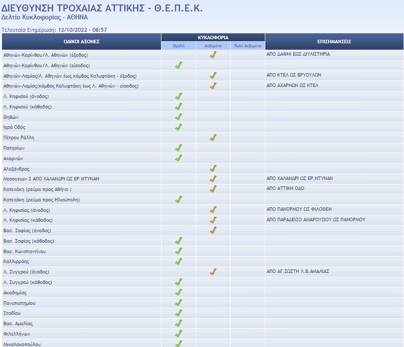 Η τελευταία ενημέρωση της τροχαίας για την κίνηση στους δρόμους: