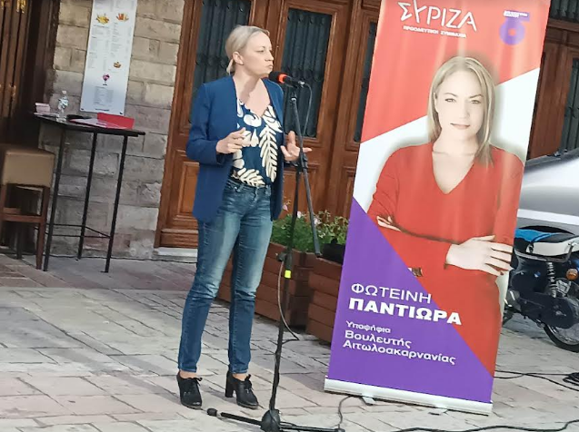 Η υποψήφια βουλευτής του ΣΥΡΙΖΑ-ΠΣ αναφερόμενη στην Αιτωλοακαρνανία επεσήμανε ότι «έχω μάθει να λέω αλήθειες και η πικρή αλήθεια είναι ότι ο τόπος που αγαπάμε η Αιτωλοακαρνανία μας είναι πολύ πίσω στους δείκτες ανάπτυξης, είμαστε από τους φτωχότερους νομούς της χώρας με κριτήριο το κατά κεφαλήν ΑΕΠ, και αρκετά πίσω σε έργα υποδομής. Η κατάσταση αυτή τα τελευταία τέσσερα χρόνια επιδεινώθηκε αισθητά λόγω των πολιτικών της ΝΔ».