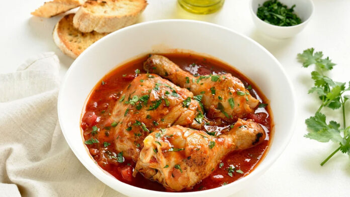 Χαμηλώστε τη φωτιά και σιγομαγειρέψτε με μισοσκεπασμένη κατσαρόλα για 45- 60 λεπτά, μέχρι να μαλακώσει το κοτόπουλο και να δέσει η σάλτσα.