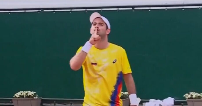El tenista caleño, raqueta número uno de Colombia, celebró mandando a callar a los aficionados marroquíes, que… pic.twitter.com/l2922YczP5