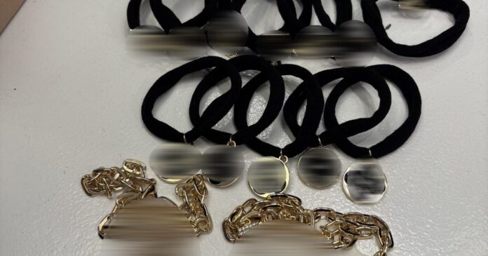 Μετά από έρευνα στο εν λόγω κατάστημα, βρέθηκαν και κατασχέθηκαν διάφορα απομιμητικά προϊόντα όπως λαστιχάκια, κολιέ και διακοσμητικά κοσμήματα.