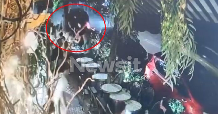 Όπως θα δείτε στο βίντεο που εξασφάλισε το newsit.gr το όχημα αρχικά πέφτει σε ένα δέντρο και στη συνέχεια παίρνει παραμάζωμα τραπέζια και θαμώνες του μαγαζιού.