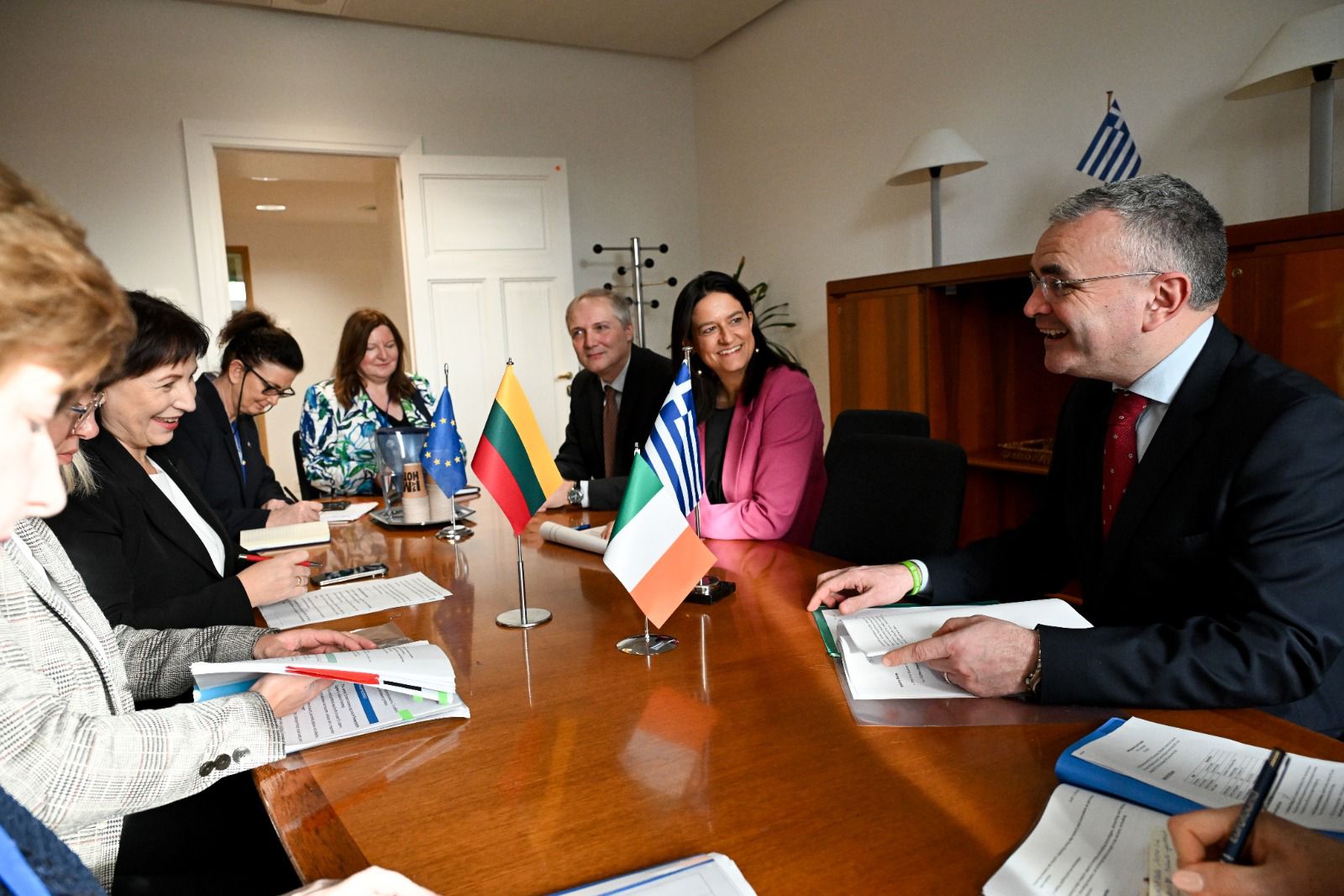 Στο περιθώριο του Συμβουλίου, η Υπουργός συμμετείχε σε τριμερή συνάντηση με τους ομολόγους της, τον Υπουργό Κοινωνικής Προστασίας της Ιρλανδίας, Ντάρα Κάλιερι  και την Υπουργό Κοινωνικής Ασφάλισης και Εργασίας της Λιθουανίας, Γιουράτε Ζάιλσκίενε, χώρες που προηγούνται της Ελλάδας στη σειρά ανάληψης της Προεδρίας του Συμβουλίου της ΕΕ.