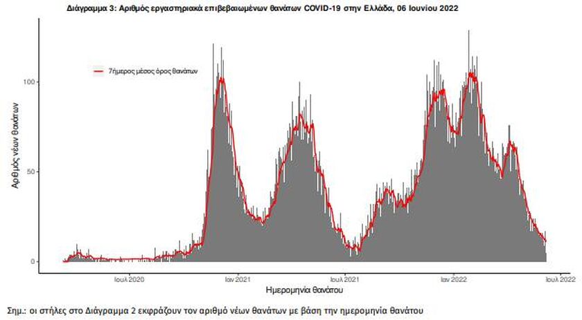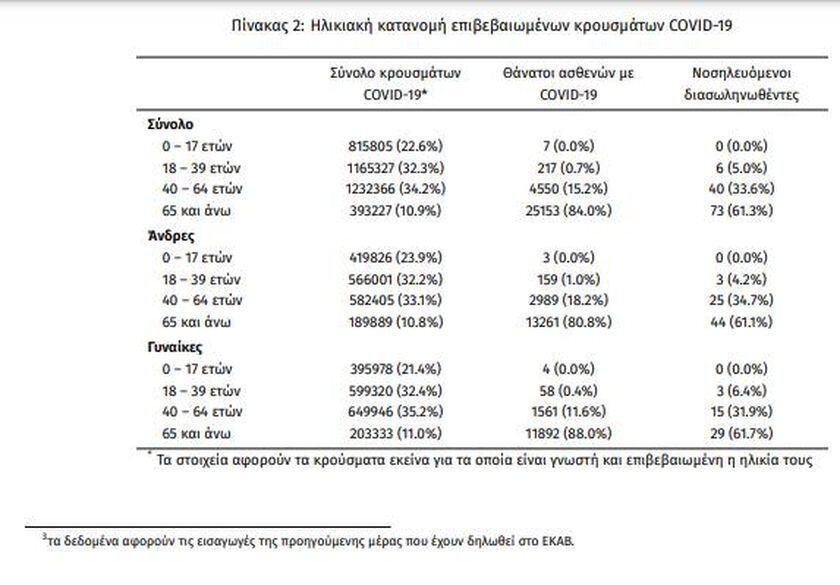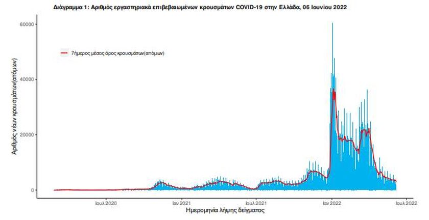 «Τα νέα εργαστηριακά επιβεβαιωμένα κρούσματα της νόσου (άτομα) που καταγράφηκαν τις τελευταίες 24 ώρες ήταν 2.501. Ο συνολικός αριθμός των ατόμων που νόσησαν ανέρχεται σε 3.473.141 (ημερήσια μεταβολή +0.1%), εκ των οποίων 48.8% άνδρες.