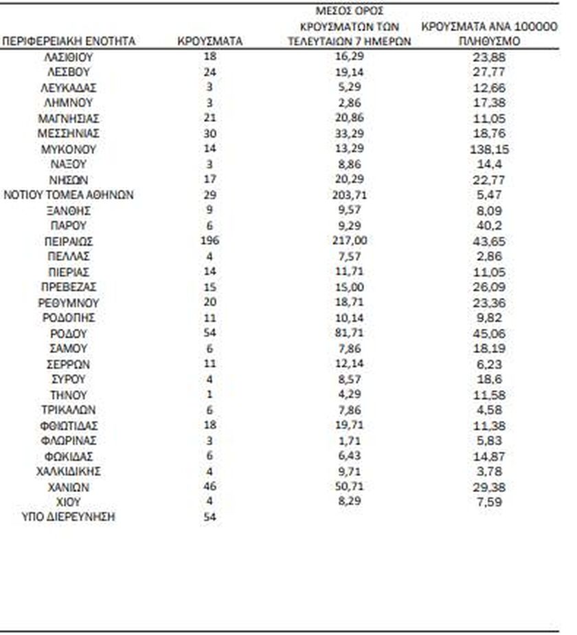 Αναλυτικά σύμφωνα με τον ΕΟΔΥ η γεωγραφική κατανομή των κρουσμάτων, έχει ως εξής: