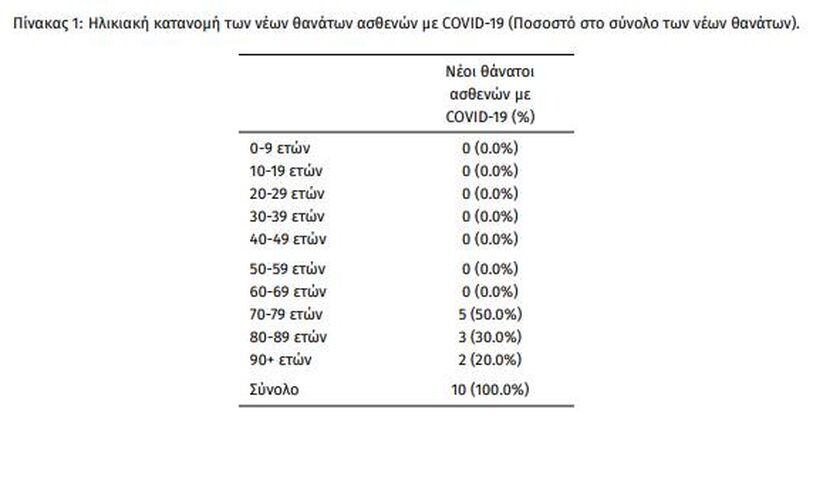 Οι νέοι θάνατοι ασθενών με COVID-19 είναι 10, ενώ από την έναρξη της επιδημίας έχουν καταγραφεί συνολικά 29.927 θάνατοι. Το 95.6% είχε υποκείμενο νόσημα ή/και ηλικία 70 ετών και άνω.