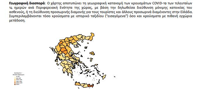 Αναλυτικά η κατανομή των κρουσμάτων σε όλες τις γεωγραφικές περιφέρειες της χώρας έχει ως εξής: